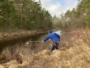 Murån som mynnar ut i södra delen av Bolmen, är det tillflöde där högst färgtal uppmätts (ett mått på hur brunfärgat vattnet är). Under våren kommer Johan Eliasson, som skriver sitt kandidatarbete i Naturvård och artmångfald för Högskolan i Halmstad, att undersöka om just Muråns höga färgtal kan förklaras genom dess tillflöden. Kan olika typer av diken ge upphov till olika färg? Finns det skillnader i färgtal mellan Muråns övre och nedre del? Och går det att hitta punktkällor som bidrar till de höga färgtalen i Murån? Detta är några av de frågor som förhoppnings ska få svar. Förutom att ta vattenprover kommer Johan att samla in, sammanställa och analysera data över dikesbredd, djup och flöde vid flera olika typer av diken som mynnar i Murån. Om det finns en korrelation mellan dikeskaraktär och färg återstår att se, men är en viktig del i att förstå hur dikning av marker påverkar vattnets färg och i förlängningen sjöars ekosystem och på sikt även vår dricksvattenförsörjning.