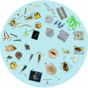 Under ytan i alla sjöar och vattendrag finns ett myller av smådjur och mikroorganismer. Bland de allra minsta finner vi kiselalger och blågröna alger. De utgör det första ledet i näringskedjan då de direkt kan utnyttja solenergin. Om de inte fanns skulle det inte heller finnas mat och näring till alla andra smådjur, fiskar och större djur.